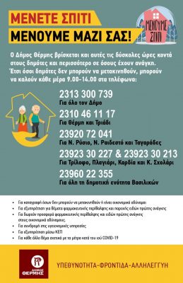 Tις κοινωνικές του υπηρεσίες και δράσεις, καθώς και το Κέντρο Διαχείρισης Covid-19 ενισχύει ο δήμος Θέρμης με προσωπικό από δομές όπως τα ΚΔΑΠ, οι παιδικοί σταθμοί και τα σχολεία,