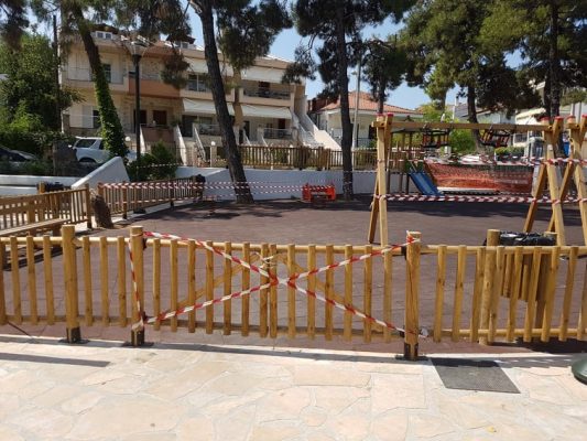 Σφραγίστηκε σήμερα το πρωί η παιδική χαρά στην κοινότητα Πλαγιαρίου του δήμου Θέρμης, μετά τους μικροβανδαλισμούς τους οποίους προκάλεσαν άγνωστοι στον εξοπλισμό και στα διάφορα