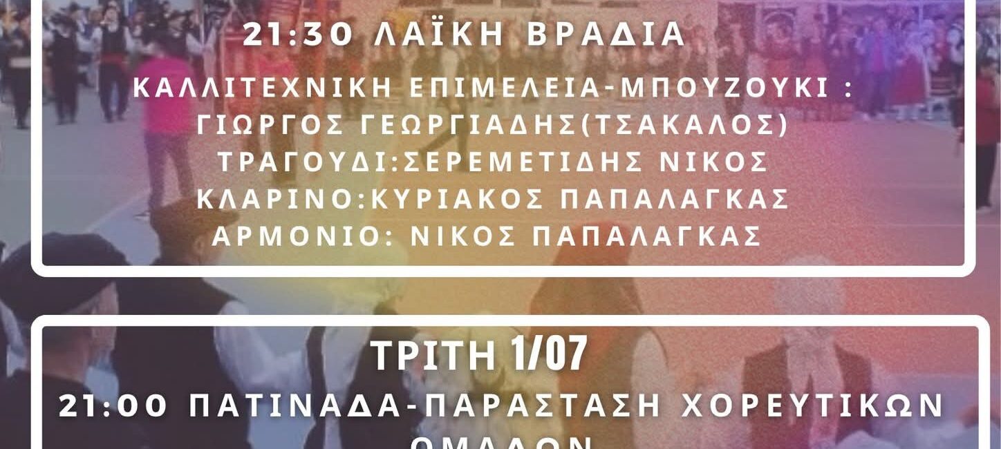 21:00 Πατινάδα – Παράσταση Χορευτικών Ομάδων
