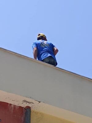 Με γοργό ρυθμό συνεχίζονται οι εργασίες σε σχολικές μονάδες του δήμου Θέρμης για την αποκατάσταση των ζημιών που προκλήθηκαν από την θεομηνία «Μπόρα». Οι εργασίες πραγματοποιούνται από τα συνεργεία του εργολάβου στον οποίο ανατέθηκε το έργο με την επίβλεψη των Τεχνικών Υπηρεσιών του δήμου, οι οποίες ετοίμασαν και τη σχετική μελέτη. Στο πλαίσιο αυτό στο δημοτικό σχολείο Αγίας Παρασκευής αντικαταστάθηκαν σπασμένα κεραμίδια στη στέγη καθώς και η μόνωση στο δώμα, προκειμένου να προστατευτεί το κτίριο από την υγρασία.