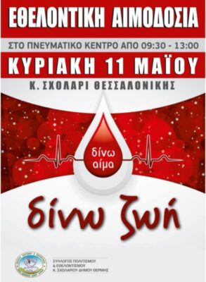 Το 2013 ο Σύλλογος Πολιτισμού και Εθελοντισμού Κάτω Σχολαρίου ξεκίνησε την 1η αιμοδοσία για την Τράπεζα Αίματος του, με σκοπό την ανάπτυξη του εθελοντισμού στην αιμοδοσία. Μέλη της Τράπεζας Αίματος είναι όλοι οι εθελοντές αιμοδότες που δίνουν αίμα στην Τράπεζα Αίματος του, ανεξάρτητα αν είναι μέλη του Συλλόγου ή όχι. Η επάρκεια αίματος είναι ζωτικής σημασίας, είναι πολύτιμο και δυστυχώς είναι πάντα σε έλλειψη! Με κάθε νέα αιμοδοσία, γινόμαστε όλο και πιο πολλοί και επομένως όλο και πιο δυνατοί!! Η αιμοδοσία είναι πράξη αγάπης. Οι αιμοδότες σώζουν ζωές, διότι… ΤΟ ΑΙΜΑ ΔΕΝ ΠΑΡΑΓΕΤΑΙ, ΠΑΡΑ ΜΟΝΟ ΧΑΡΙΖΕΤΑΙ !!!!!! Ελάτε να αποδείξουμε έμπρακτα την κοινωνική ευαισθησία που έχουμε και ας προσφέρουμε το αίμα μας σε λίγα λεπτά από τον χρόνο μας που για κάποιον συνάνθρωπό μας είναι θέμα ζωής!!! Δίνω αίμα, δίνω ζωή! Τα μέλη του Συλλόγου, οι γιατροί και νοσηλευτές της κινητής μονάδας αιμοληψίας του Γ.Ν.Θ. Αγίου Παύλου σας περιμένουμε Κυριακή 11 Μαΐου 2025, 09:30 – 13:00, στο Πνευματικό Κέντρο Ι.Ν. Αγίου Γεωργίου Κάτω Σχολαρίου.