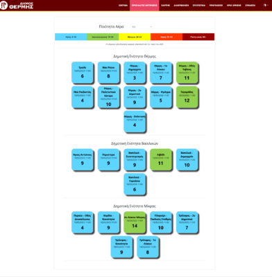 Υ.Γ. Στη φωτογραφία απεικονίζεται η σημερινή πρωινή – πραγματική εικόνα της ποιότητας του αέρα σε όλες τις κοινότητες του δήμου Θέρμης.