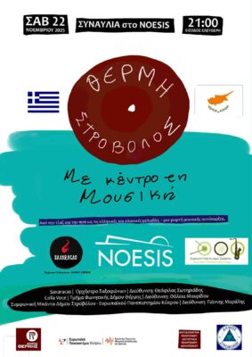 Ο Δήμος Θέρμης και ο Δήμος Στροβόλου, παρουσιάζουν μια ξεχωριστή μουσική βραδιά, το Σάββατο 22 Νοεμβρίου 2025 στις 21:00, στο αμφιθέατρο του NOESIS, με ελεύθερη είσοδο. Στη σκηνή θα συναντηθούν μουσικά σύνολα από την Ελλάδα και την Κύπρο, προσφέροντας ένα πολυδιάστατο πρόγραμμα που ταξιδεύει από την τζαζ και την ποπ έως τις κλασικές και ελληνικές μελωδίες — μια πραγματική γιορτή μουσικής συνύπαρξης.