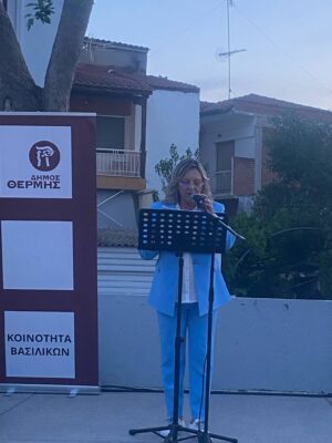 Κατά το σύντομο χαιρετισμό της η πρόεδρος της Κοινότητας Βασιλικών Όλγα Γιαννιού αναφέρθηκε στην τελετή Ξεθρονιάσματος του Αγίου, που αποτελεί μία τελετουργία η οποία πραγματοποιείται εδώ και πολλά χρόνια μόνο στα Βασιλικά κατά την οποία η εικόνα του Αγίου αφαιρείται από τη θέση της και μετά από Λιτάνευση επανατοποθετείται σε κεντρικό σημείο του Ιερού Ναού. Η κ. Γιαννιού ευχαρίστησε τους Συλλόγους, το ΚΑΠΗ και τους επαγγελματίες των Βασιλικών για τη σημαντική συμβολή τους στις εκδηλώσεις οι οποίες ολοκληρώθηκαν με λαϊκό γλέντι ως αργά το βράδυ.