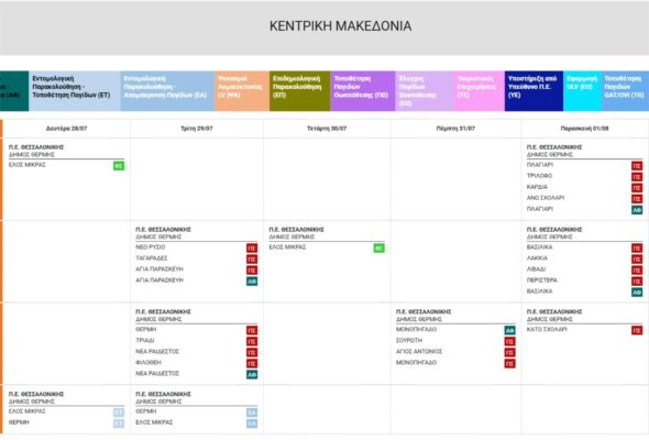 Αναλυτικά το πρόγραμμα των ψεκασμών από Δευτέρα 28 Ιουλίου έως και την Παρασκευή 1 Αυγούστου 2025 έχει ως εξής: