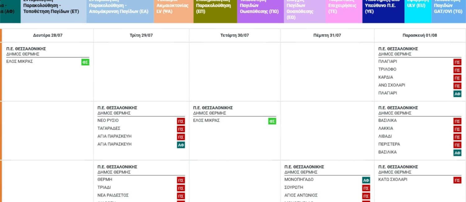 Αναλυτικά το πρόγραμμα των ψεκασμών από Δευτέρα 28 Ιουλίου έως και την Παρασκευή 1 Αυγούστου 2025 έχει ως εξής:
