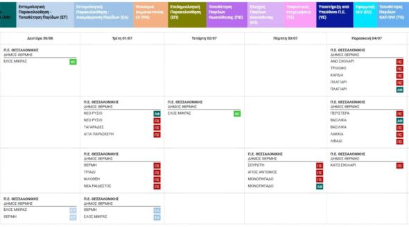Αναλυτικά το πρόγραμμα των ψεκασμών από Δευτέρα 30 Ιουνίου έως και την Παρασκευή 4 Ιουλίου 2025 έχει ως εξής:
