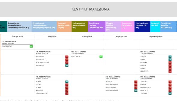 Αναλυτικά το πρόγραμμα των ψεκασμών από Δευτέρα 4 Αυγούστου έως και την Παρασκευή 8 Αυγούστου 2025 έχει ως εξής: