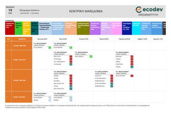 Αναλυτικά το πρόγραμμα των ψεκασμών από σήμερα Δευτέρα 5 Μαΐου έως και την Παρασκευή 9 Μαΐου 2025 έχει ως εξής: