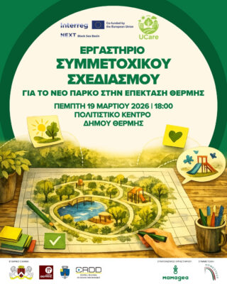 Ο Δήμος Θέρμης, σε συνεργασία με την Περιβαλλοντική Οργάνωση Μαμαγαία και την Τεχνοομοιόσταση, προχωρά δυναμικά στη διαδικασία συμμετοχικού σχεδιασμού για τη δημιουργία ενός νέου πάρκου στην περιοχή της επέκτασης Θέρμης (Ο.Τ. 163), στο πλαίσιο του ευρωπαϊκού έργου UCare.