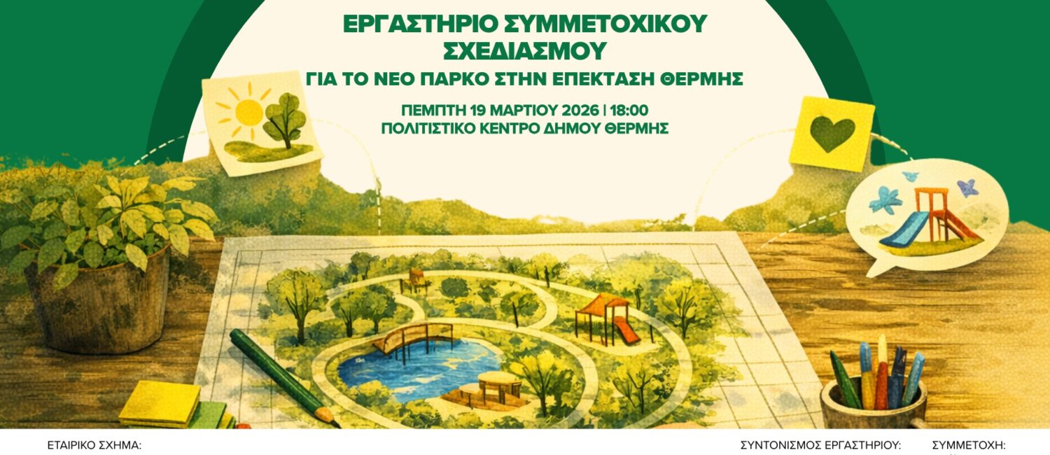 Στο πλαίσιο αυτό, ο Δήμος Θέρμης προσκαλεί τους δημότες να συμμετάσχουν στο δεύτερο εργαστήριο συμμετοχικού σχεδιασμού, το οποίο θα πραγματοποιηθεί την Πέμπτη 19 Μαρτίου 2026, στις 18:00, στη Βιβλιοθήκη του Πολιτιστικού Κέντρου Θέρμης.