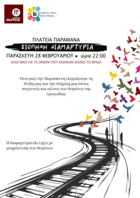 Στις 10 το βράδυ, το Συμβούλιο Νέων Δήμου Θέρμης διοργανώνει στην πλατεία Παραμάνα της Θέρμης σιωπηλή διαμαρτυρία με το σύνθημα: «Όλοι μαζί για τα όνειρα που χάθηκαν εκείνο το βράδυ». Δυο χρόνια μετά, η μνήμη παραμένει ζωντανή. Μια σιωπηλή διαμαρτυρία, ένα συλλογικό πένθος, μια υπόσχεση πως δεν θα ξεχαστεί κανείς.