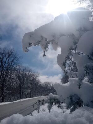 Χιονοπτώσεις σημειώθηκαν αργά το βράδυ της Κυριακής 6 Απριλίου σε όλο τον ορεινό όγκο του δήμου Θέρμης, στις κοινότητες Λιβαδίου, Περιστεράς και Αγίου Αντωνίου. Τα ασυνήθιστα για την εποχή καιρικά φαινόμενα βρήκαν σε πλήρη ετοιμότητα τις δυνάμεις Πολιτικής Προστασίας του δήμου οι οποίες, υπό τον συντονισμό του αρμόδιου αντιδημάρχου Κωνσταντίνου Κουγιουμτζίδη έκαναν αποχιονισμό καθ’ όλη τη διάρκεια της νύχτας με δύο εκχιονιστικά μηχανήματα να δρουν σε Λιβάδι και Περιστερά και ένα μηχάνημα τύπου Unimog στο οδικό δίκτυο του Αγίου Αντωνίου, κάνοντας παράλληλα ρίψεις αλατιού. Στο έργο του αποχιονισμού συμμετείχαν ακόμη οκτώ υπάλληλοι του δήμου και αρκετοί εθελοντές της Πολιτικής Προστασίας Θέρμης.