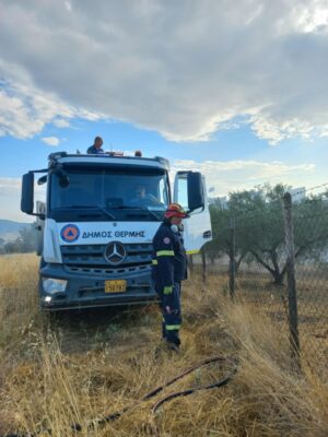 Σημαντική βοήθεια προς την Πυροσβεστική Υπηρεσία, στην προσπάθεια κατάσβεσης τριών πυρκαγιών παρείχαν οι Εθελοντές Πολιτικής Προστασίας του Δήμου Θέρμης, το Σάββατο 23 Αυγούστου. Συγκεκριμένα, στις 12.00 το μεσημέρι η Εθελοντική Ομάδα Πολιτικής Προστασίας του Δήμου Θέρμης κλήθηκε από την Περιφερειακή Διοίκηση Πυροσβεστικών Υπηρεσιών (ΠΕΚΕ) Κεντρικής Μακεδονίας, να συνδράμει την Πυροσβεστική Υπηρεσία στο έργο της κατάσβεσης πυρκαγιάς σε ξερά χόρτα στην περιοχή του Χορτιάτη. Οι Εθελοντές του Δήμου Θέρμης ανταποκρίθηκαν αμέσως στέλνοντας στο σημείο πυροσβεστικό όχημα (Θέρμη 2) με τρεις Εθελοντές.