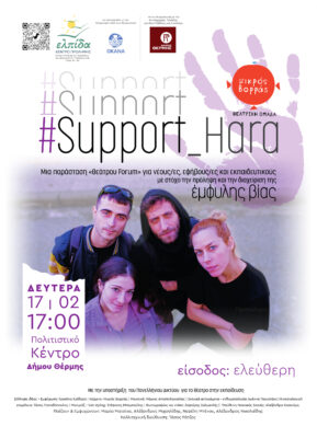 Το Κέντρο Πρόληψης των Εξαρτήσεων και Προαγωγής της Ψυχοκοινωνικής Υγείας «ΕΛΠΙΔΑ» σε συνεργασία με τη Διεύθυνση Παιδείας, Νεολαίας, Δια Βίου Μάθησης και Απασχόλησης του δήμου Θέρμης παρουσιάζουν την παράσταση του «Μικρού Βορρά», “#Support_Hara”, την Δευτέρα 17 Φεβρουαρίου 2025 και ώρα 17:00, στο Δημοτικό Θέατρο Θέρμης.