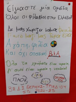 Ευχαριστούμε τους μαθητές και εκπαιδευτικούς της ΣΤ’ τάξης του 3ου Δημοτικού Σχολείου Θέρμης- Τριαδίου και του Δημοτικού Σχολείου Αγίου Αντωνίου για τη συμμετοχή τους, τις εργασίες που δημιούργησαν και κυρίως τα μηνύματα που περιέχονται σε αυτές.