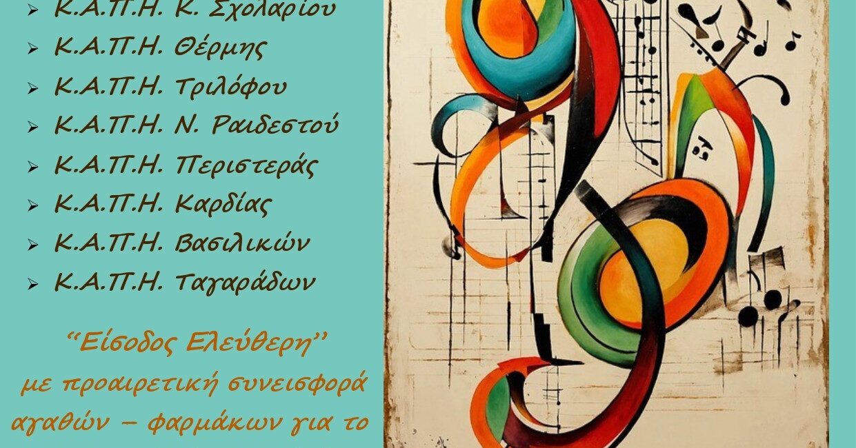Η είσοδος είναι ελεύθερη με προαιρετική συνεισφορά αγαθών για το Κοινωνικό Παντοπωλείο και το Κοινωνικό Φαρμακείο Δήμου Θέρμης.